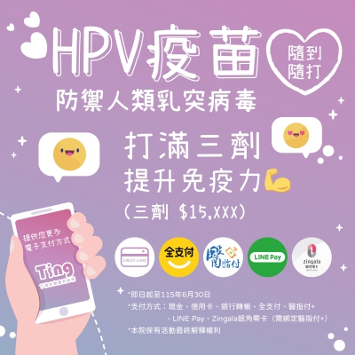 HPV九價子宮頸疫苗❤️115/04/01至06/30
