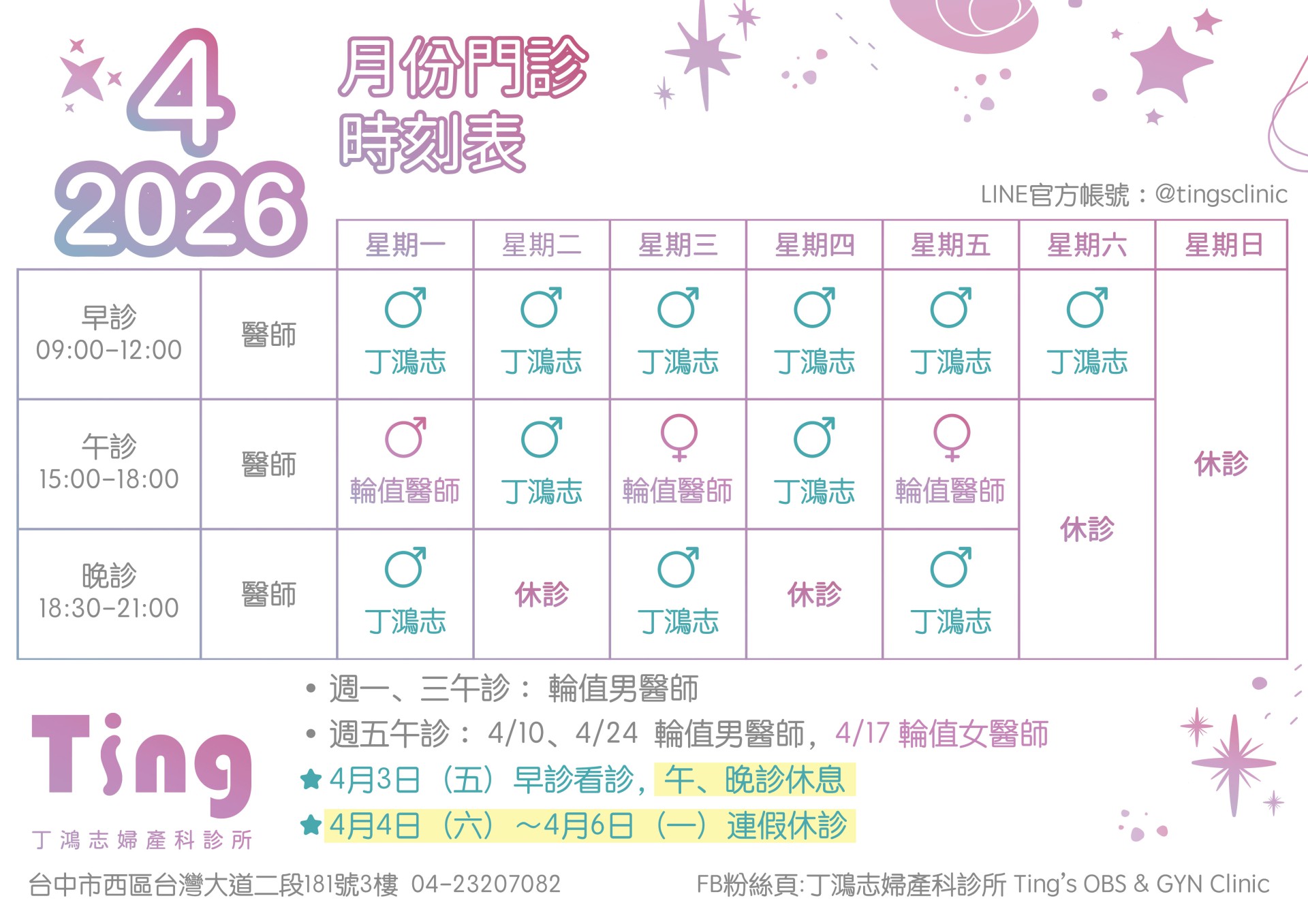 115年4月份門診時刻表